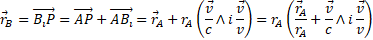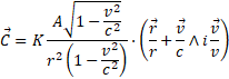 Let's see then how the field of a source A in motion with linear velocity v is perceived by a stationary observer. Applying the transformation equations (2) to relation (3) we obtain: