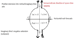 For a hundred and ten years, science has accepted the concept of space-time which was formulated by Russian-German mathematician Hermann Minkowski and unites one time dimension with three space dimensions. Today, so-called imaginary numbers (such as i, which equals √-1) describe so-called imaginary time. Imaginary time is a concept derived from special relativity and quantum mechanics. Geometrically, imaginary numbers are found on the vertical axis of the Complex Number Plane, allowing them to be presented perpendicular to the real axis of space-time as we know it. One way of viewing imaginary numbers is to consider a standard number line, positively increasing in magnitude to the right, and negatively increasing in magnitude to the left. At 0 on this x-axis (the so-called real axis), a y-axis (the so-called imaginary axis) can be drawn with "positive" direction going up - "positive" imaginary numbers then increase in magnitude upwards, and "negative" imaginary numbers increase in magnitude downwards.