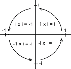 Figure 4: WICK ROTATION: “The complex plane reveals i’s special relationship with cycles via the circle of i, also known as Wick rotation. Whenever a point on the complex plane is multiplied by i, it moves a quarter rotations around the origin or center of the plane” [8].