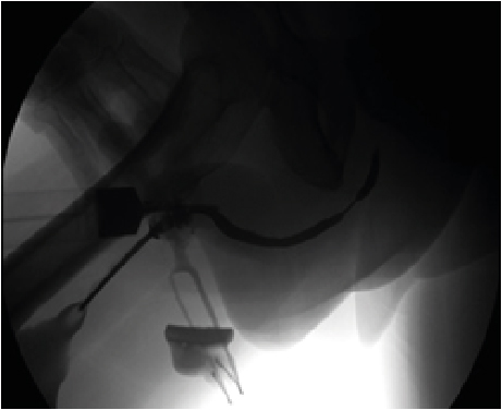 - Injection of contrasted material previously diluted to 50 or 60% with continuous and slow pressure as well as use of fluoroscopic guide.