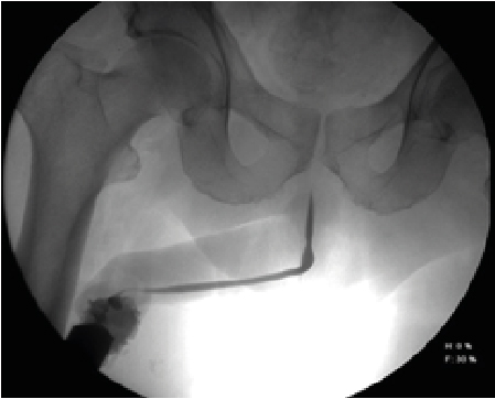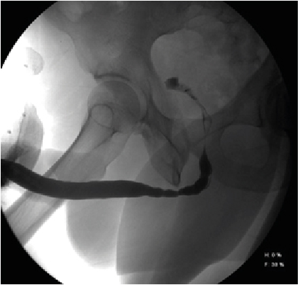 Figure 1: Contrast Drainage in Skin, Can Simulate Double Urethra or False Via