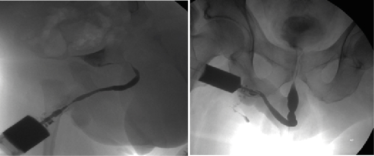 Figure 2: AP Projections with Oblique Taking of the Penis, Avoiding Adequate Visualization of the Urethral Route