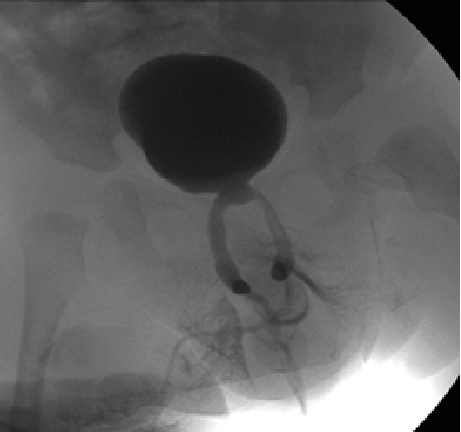 - After filling the anterior urethra, images are acquired when confirming passage of the contrast to the bladder.