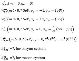 and the weak bosons W-W+ and Zo carry the force between the first-generation quarks d and u, and the first generation leptons e– and νe; these bosons are related to Higgs boson Ho via Higgs mechanism and Planck's constant h has been determined for hydrogen atom system, weak bosons carry the electromagnetic short distance force.