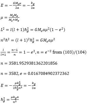We apply equation (100) to the Sun-Earth system, equating equation (100) to the total energy of the gravitational system we get the value of Planck's gravitational constant in this system,