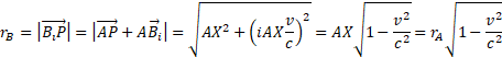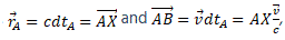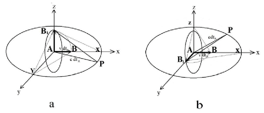 in the stationary RFA ; B is the position, at the time dtA , of the light source in motion.