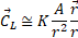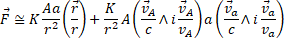 This relation shows that the force exerted between the to sources is made by two components. The first is