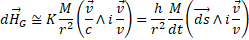 . We can then calculate the gravitomagnetic field using the same formula that Laplace, starting from the results of Biot and Savart's experiments, designed to calculate the magnetic field produced by an electric current flowing in a circuit of whatever form. For a current of mass flowing in a pipe we have: