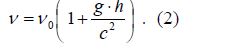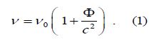 Where, ν is the altered frequency, νo is the initial frequency, c is the speed of light and Φ is the gravitation potential difference.