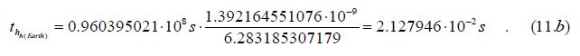Similar to the above, by dividing both sides of the formula (Eq.7.a) that determines the radius of the Earth (hh(Earth)) by the speed of light (c), the equation is the following: