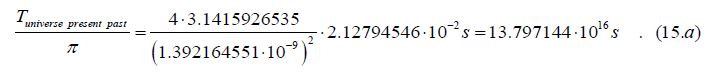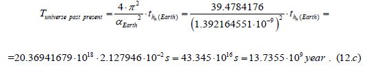 Similarly, as in 6.1.d, by dividing both sides of the combined equation (eq.12.c) by 2∙π, we can arrange the equation for Tuniverse past present/2∙π: