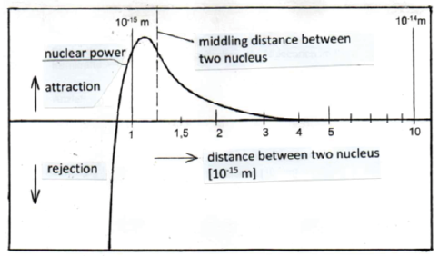 Figure 3: Strength of nuclear forces, depending on the distance of two nucleons from each other (qualitative) [6].