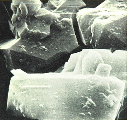 Figure 1. Scanning Electron Microscopy of Crystalline Alpha-Amylase form the Parotid Saliva of one Individual, obtained by Ammonium Sulfate-Acetone Precipitation. Reprint from our publication in Scandinavian Journal of Dental Research 1970 (reference no. 2) by permission of Wiley Global Permissions